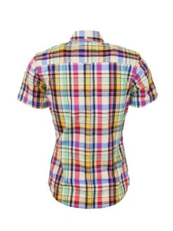Ladies short sleeve summary down shirt in a Multi colour check.