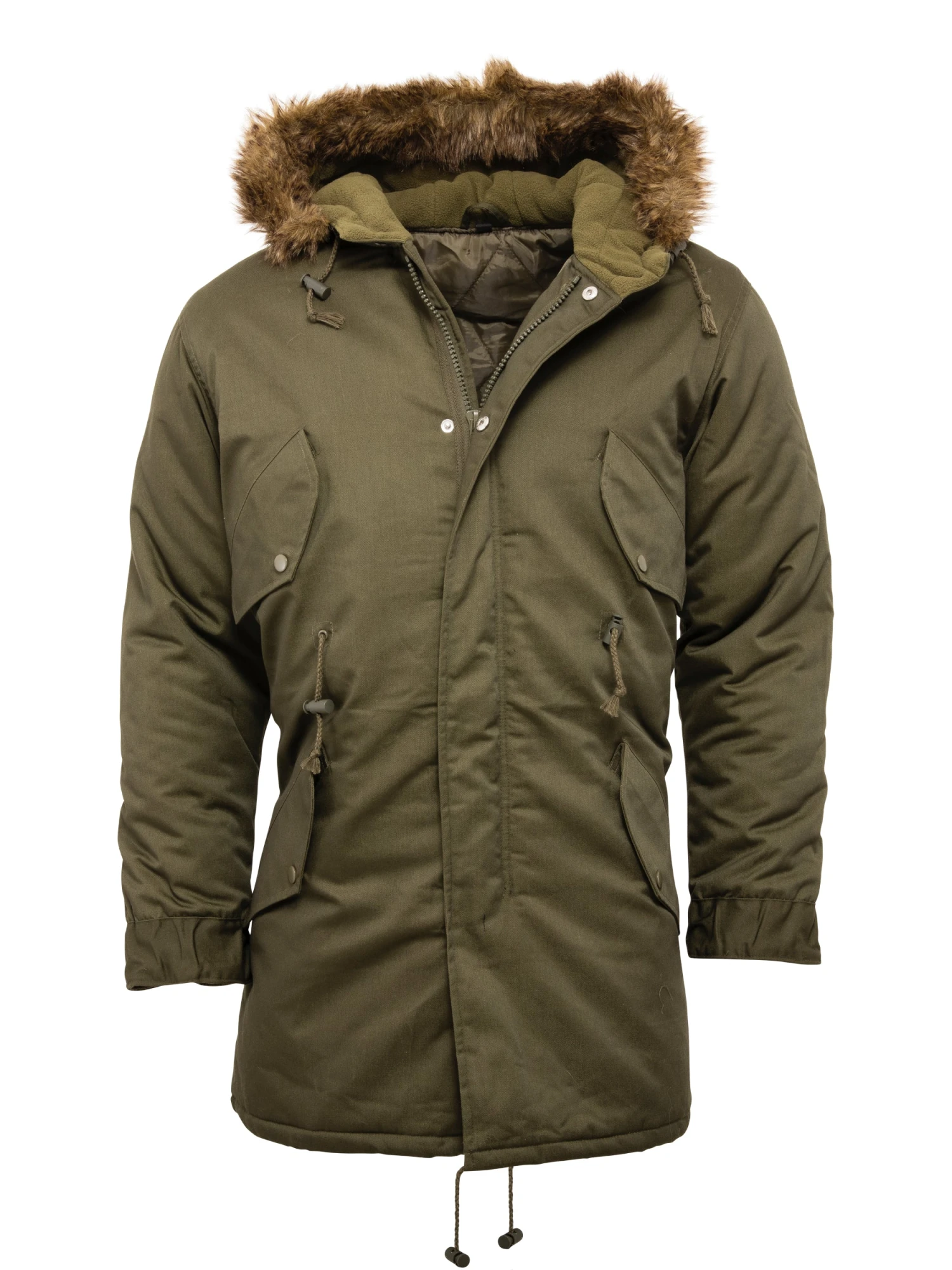 Nothing Clever Here POLY / COTTON with quilted inside lining, faux fur on hood, classic M-65 fishtail design