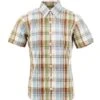 Ladies short sleeve summary down shirt in Black, Green & yellow Jamaican colourways.