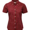 Ladies short sleeve summary down shirt in a Mustard & Burgundy check.