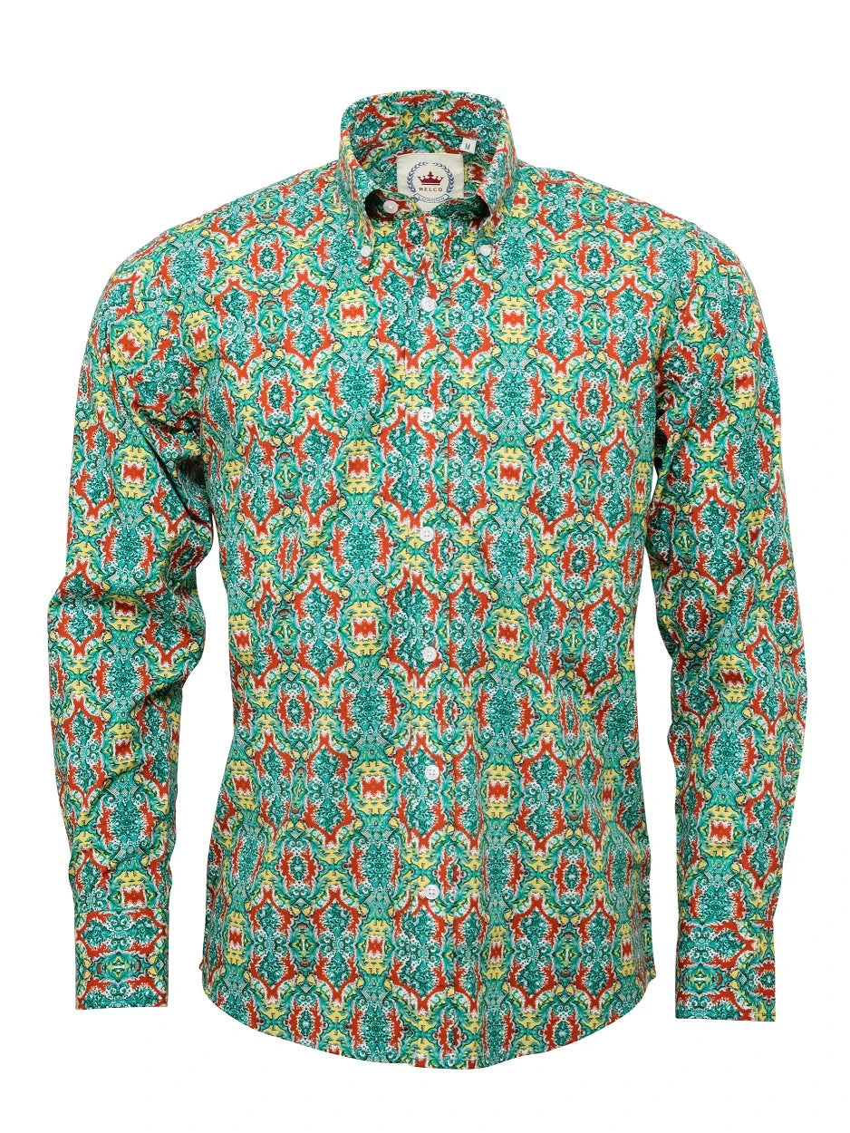 Our men’s Green, Red & Yellow patterned shirt made from 100% high quality cotton.