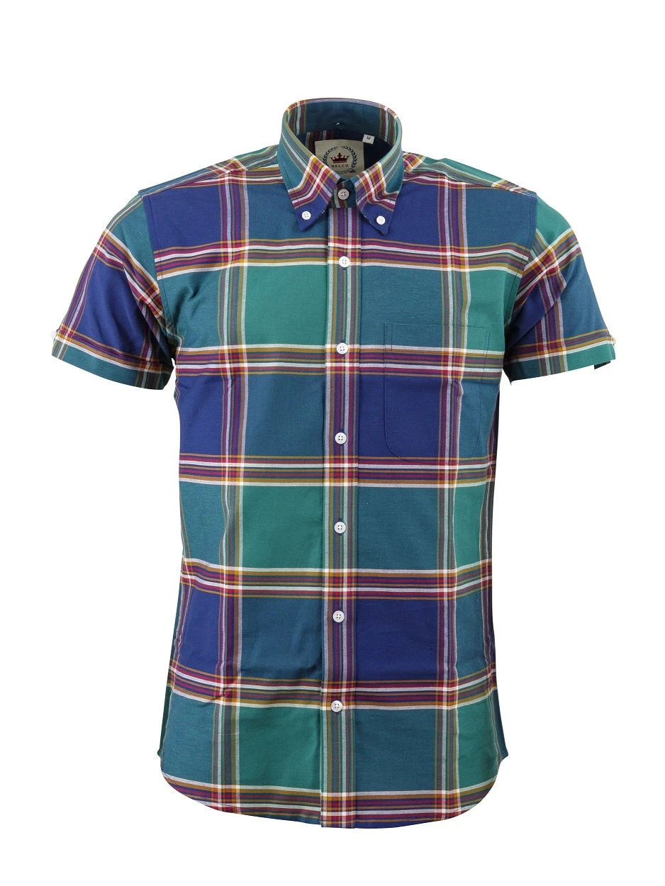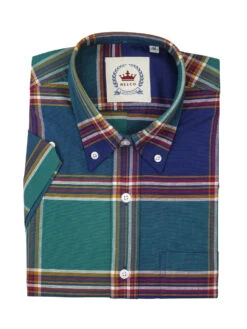 Limited edition Large Green windowpane check shirt, complete with our iconic 3 finger summary down collar, full length back box pleat, V- Cut out on sleeve, Left chest pocket