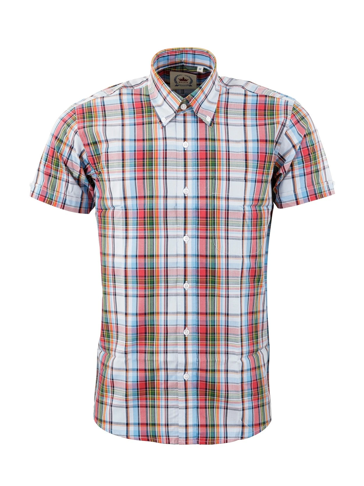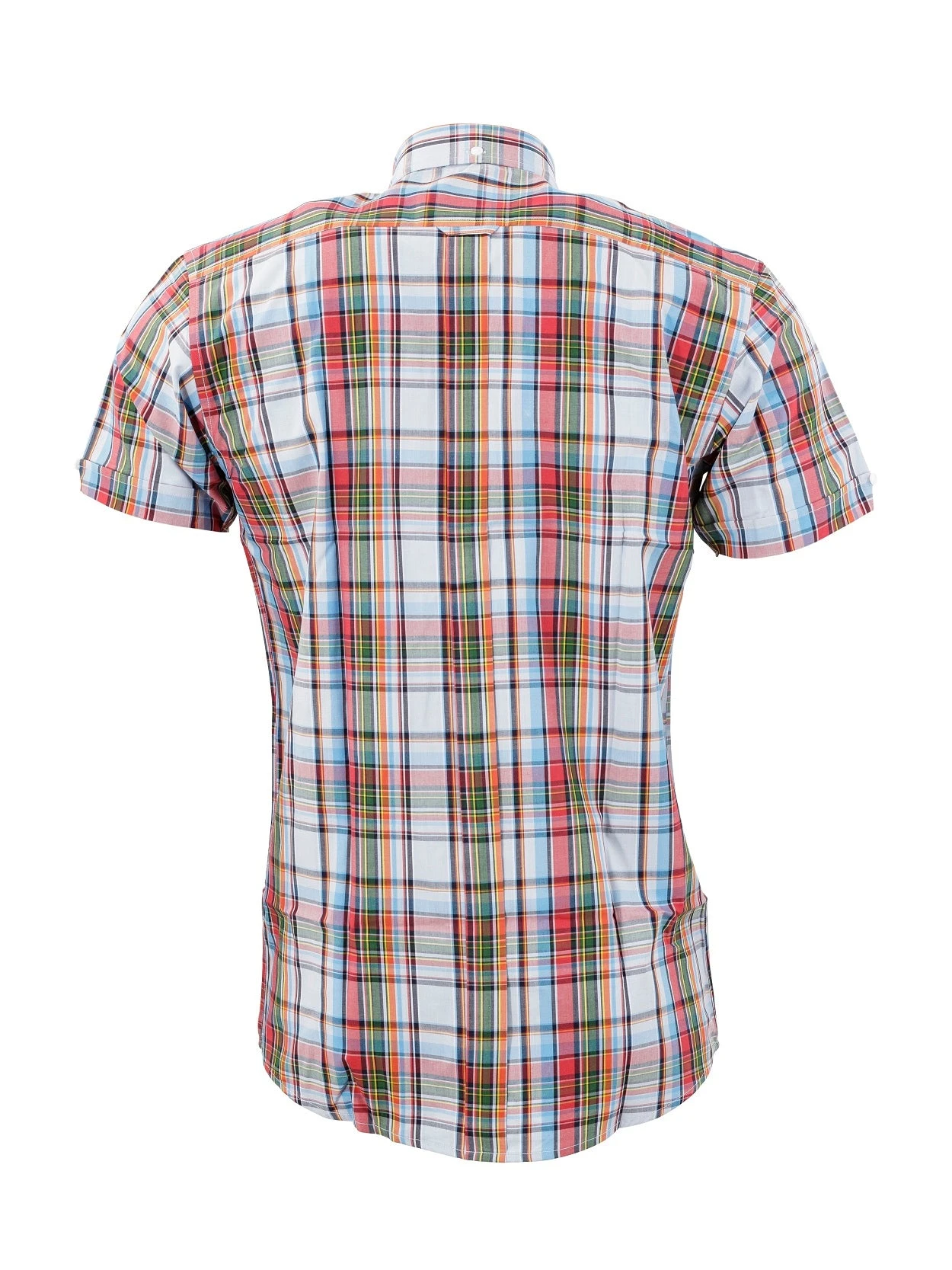 Men’s Multi colour check shirt, complete with our iconic 3 finger summary down collar, full length back box pleat, V- Cut out on sleeve.